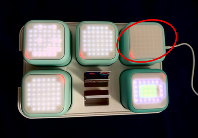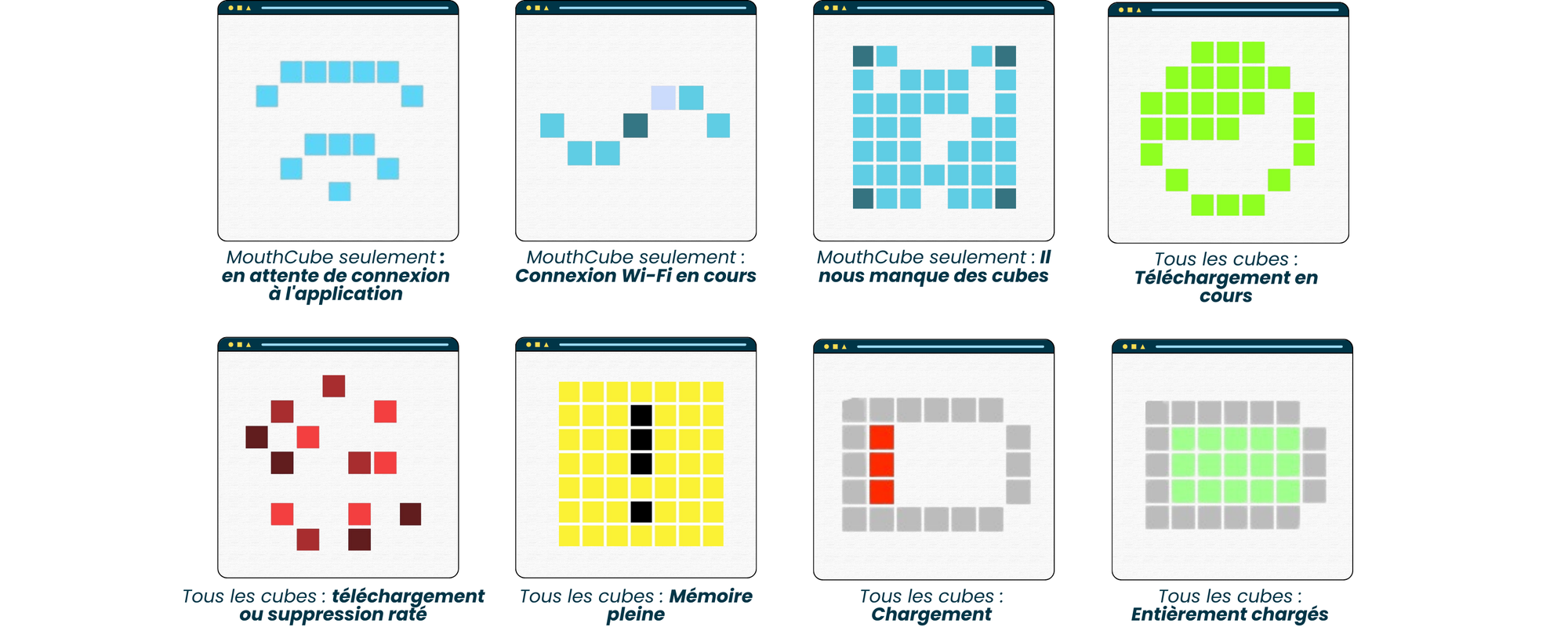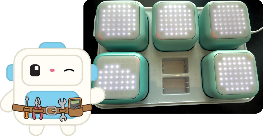 Les cercles rouges et la mention « Je ne suis pas apparié » indiquent qu'un ou plusieurs cubes ont perdu la connexion et doivent être appariés à nouveau.