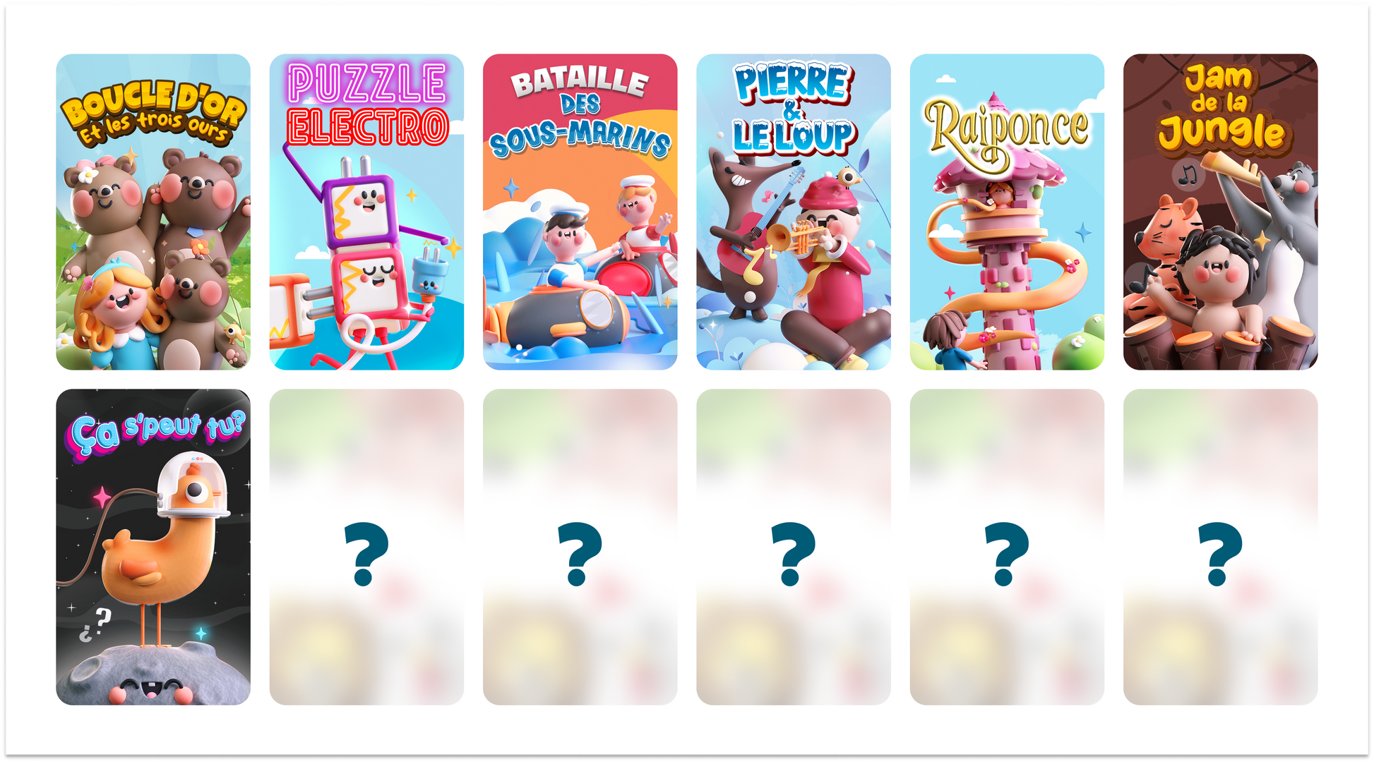 - Boucle d'Or et les trois ours : Aidez Boucle d'Or à retrouver son chemin vers la sécurité en commandant des objets, en résolvant des énigmes et en choisissant le lit parfait. Progressez à travers des chapitres captivants qui améliorent les compétences de résolution de problèmes et de raisonnement spatial, et profitez de cette histoire interactive plusieurs fois. Jouez les cartes comme indiqué sur l'image. Détails à venir.